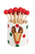 Reindeer Toothpick Holder. This charming hand-painted stoneware caddy adds a festive touch to any table setting, featuring a delightful reindeer design that captures the spirit of the season. The holder is crafted with attention to detail, ensuring durability and a unique aesthetic appeal. Accompanied by a pack of wooden toothpicks, each adorned with a decorative icon topper, this set is perfect for holiday gatherings or everyday use. The compact size of 2 1/4" x 2" in diameter makes it an ideal fit for any countertop or dining table. Elegantly wrapped in cello, it also makes a thoughtful gift for hosts or a whimsical addition to your own kitchen decor.