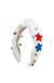 This exquisite cotton headband is a true statement piece, meticulously embellished with hand-applied pavé rhinestones and delicate seed beads. Each sparkling rhinestone and bead is carefully placed to create a dazzling effect that catches the light beautifully, adding a touch of glamour to any outfit. The headband features a stylish top knot design, adding an element of chic sophistication to your look. With an outer width of 3 inches and a knot height of 1 1/4 inches, it offers a comfortable fit while making a bold fashion statement. Crafted with a durable plastic base, this headband ensures both style and longevity, making it a perfect accessory for special occasions or to elevate your everyday ensemble.