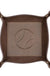 The Leather Embossed Valet Tray in Dark Brown is a stylish accessory for organizing your belongings. Measuring 8x8 inches, it is perfect for storing your keys, phone, wallet, and other small items.