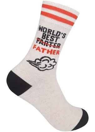 Celebrate Dad’s… unique talents with these white novelty socks featuring black toes and heels, bold orange cuff stripes, and the unforgettable mess...