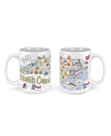 Celebrate the beauty and charm of the State with our North Carolina Map Mug! Featuring a colorful illustrated map with landmarks, state symbols, a...