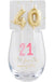 Candle Wine Glass Set. This elegant 3-piece set features a stemless foiled wine glass, perfect for any occasion. The glass holds up to 16 oz, providing ample space for your favorite wine or beverage. Accompanying the glass is a set of two birthday cake age candles, each measuring 2 1/2 inches, adding a festive touch to your celebrations. Ideal for birthdays, anniversaries, or any special event, this set combines functionality with a touch of sophistication.