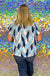 This blouse is the best combination of feminine details and a bold print in your team colors.  Featuring a satin fabrication, ruffle mandarin collar, v-neck, and flare raglan sleeve, this fun and versatile piece is a must-have that you will wear for seasons to come!