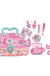 - What's in the box: Cosmetic caddy with lift-out try and see-through top, 2 bottles of scented nail polish, nail file, 2 glitter toe separators, lip gloss, tri-color eyeshadow palette and eyeshadow applicator.