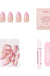 Pink Macaron brings a sweet, romantic touch to the classic French manicure with soft light pink tips on a semi-translucent base. Designed in our signature short almond shape, this set delivers a delicate and feminine look that’s perfect for everyday wear or special moments. Finished with a glossy UV coating, it offers a seamless, salon-style appearance in minutes.