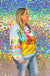 Queen of Sparkles Vintage Vacation Santa Sweatshirt - Blue/Gold