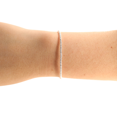 Beaded Blondes stackable beaded bracelet. Sterling Silver & elastic string. Handstrung in College Station, Texas. Sourced in the US. Waterproof...