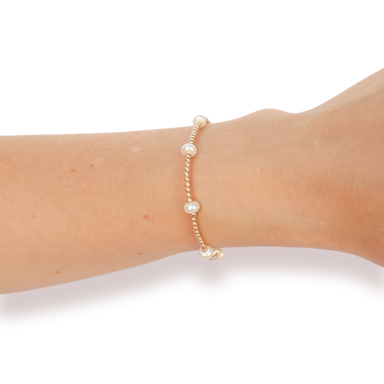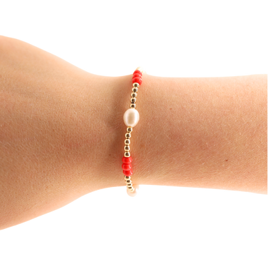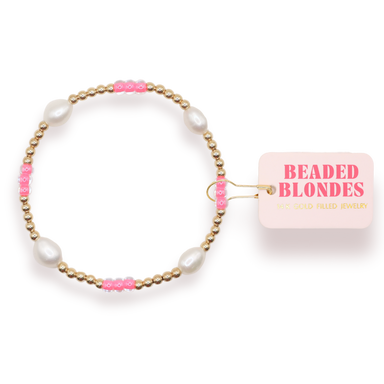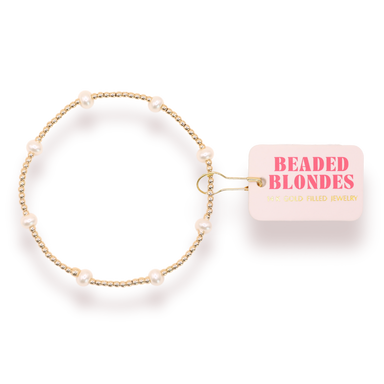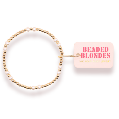 Beaded Blondes stackable beaded bracelet. 14K gold filled & elastic string. Handstrung in College Station, Texas. Sourced in the US. Waterproof...