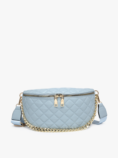 FINAL SALE Sylvie Quilted Belt Bag with Chain Strap - Blue