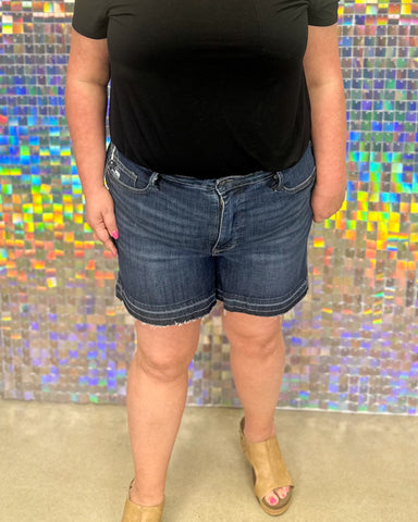 FINAL SALE Judy Blue Keep Jumping Mid Rise Carpenter Shorts - Dark Wash