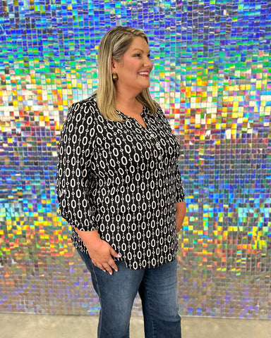 Lizzy Luxe Top - Black Geo