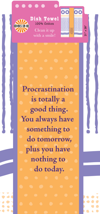 Dish Towel: Procrastination Bring on some good cheer with these laugh out LOUD dish towels 100% Cotton 21"x28" Each towel comes with a hangtag and ...