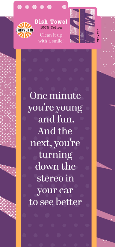 Dish Towel: Young and Fun Bring on some good cheer with these laugh out LOUD dish towels 100% Cotton 21"x28" Each towel comes with a hangtag and ho...