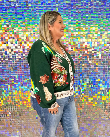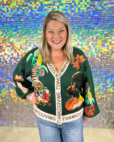 Queen of Sparkles Thanksgiving Button Cardigan - Dark Green