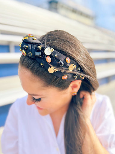 Black headband with gold plated football helmet charms and football beads Hand-sewn crystals and embellishments Comfortable & perfect for eve...