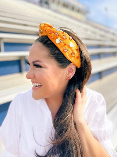 Football Stud earring Made to match our Fan Gear Football Headband Measures .75” wide Gold plated with hypoallergenic titanium post