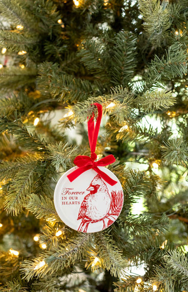 The Cardinal Disc Ornament is a beautifully crafted stoneware ornament that will add a touch of elegance to your holiday decor. Made from high-qu...