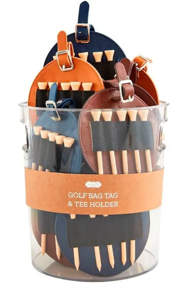 Elevate your golf game with our sophisticated Golf Tee Bag Tag. Crafted from debossed faux leather, this bag tag holds a set of five wooden golf ...