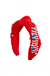 This exquisite cotton headband is a true statement piece, meticulously embellished with hand-applied pavé rhinestones and delicate seed beads. Each sparkling rhinestone and bead is carefully placed to create a dazzling effect that catches the light beautifully, adding a touch of glamour to any outfit. The headband features a stylish top knot design, adding an element of chic sophistication to your look. With an outer width of 3 inches and a knot height of 1 1/4 inches, it offers a comfortable fit while making a bold fashion statement. Crafted with a durable plastic base, this headband ensures both style and longevity, making it a perfect accessory for special occasions or to elevate your everyday ensemble.