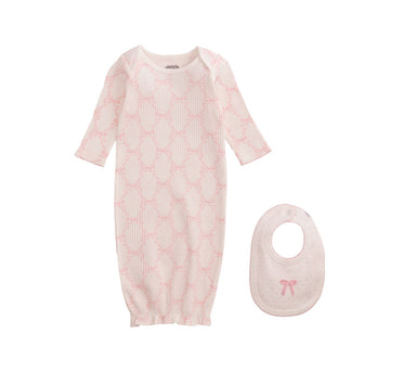 2-piece set. Cotton rib gown with ruffle hem. Comes with interlock bib with crochet bow.