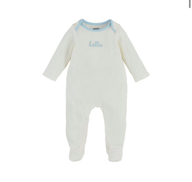 Introducing the Chainstitch Blue Baby Sleeper – a cozy long sleeve outfit made from soft cotton rib fabric. It features beautiful chain stitched e...