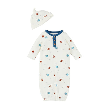 This Mud Pie Football Take-Me-Home Hat Set is a winning choice for your little one! The 2-piece set includes a comfortable waffle weave cotton gown...
