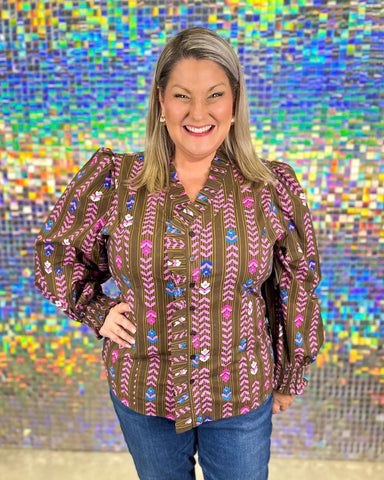 Our Wild Wonder Top adds a touch of sophistication to any wardrobe. The v-neck detail and elasticized cuff give it a luxurious feel, while the pin...