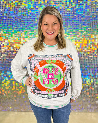 Queen of Sparkles Mahjong Table Sweatshirt - Grey/Multi