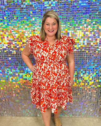 Explore your wild side with our Entro Izzy Top! The bold abstract print and flutter sleeves add a touch of fun, while the v-neckline and tassels gi...