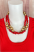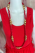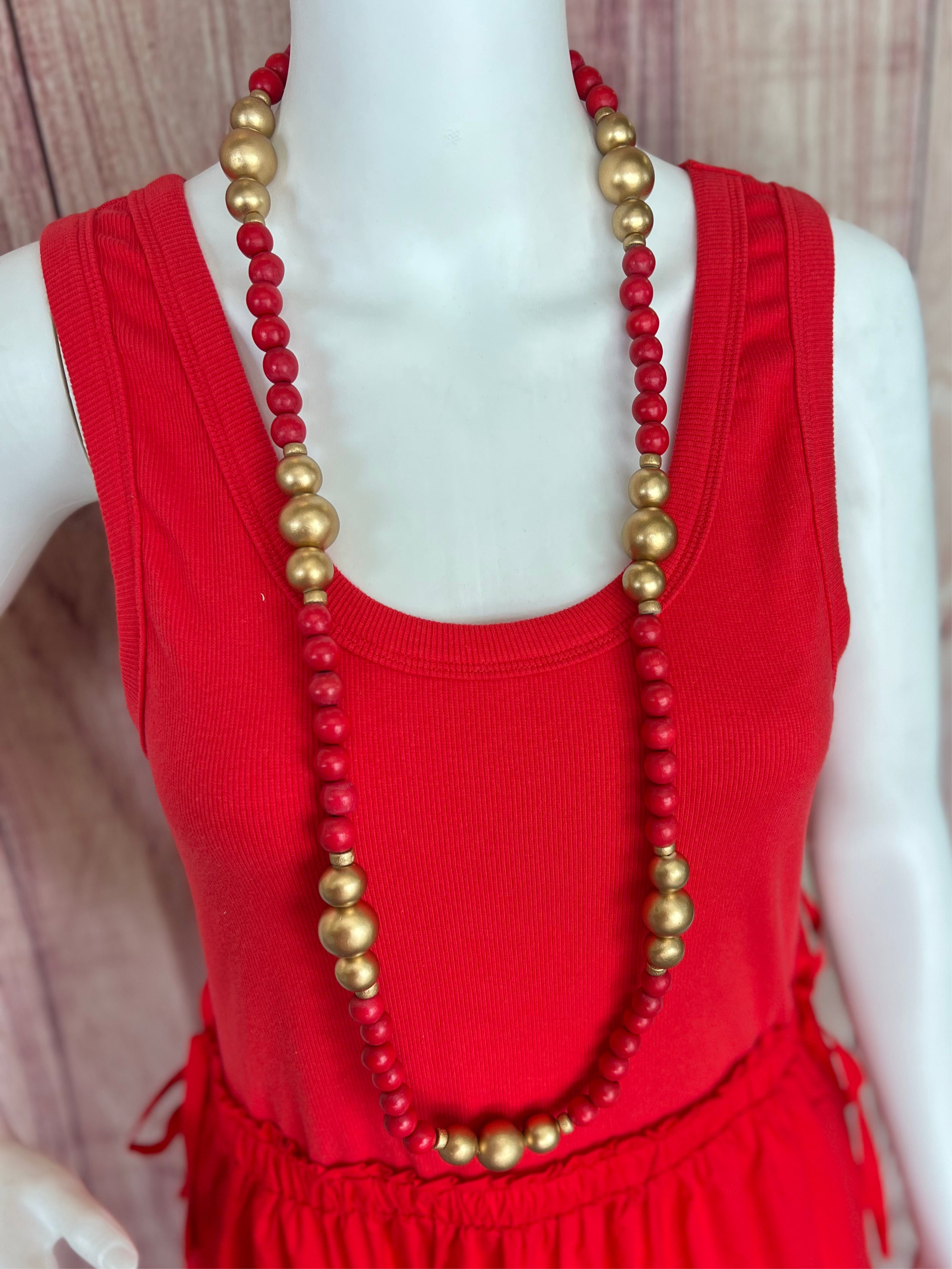 Wood bead necklace with ceramic chinoiserie and bamboo accent beads, 34" total length.